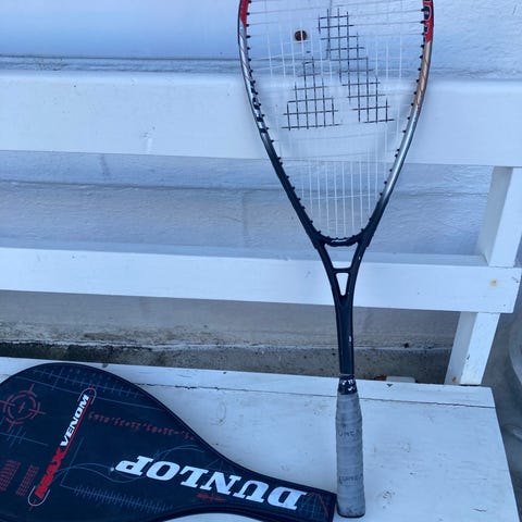 Dunlop Aero ti squashracketer selges samlet. Den ene har en brukket tråd, se bilde.