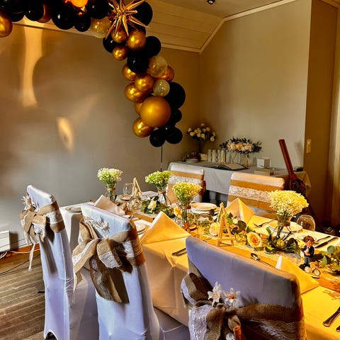 Drapering for pynt i tak. Selskap, bryllup, fest. Leies ut for 500 kr per helg. Har 5 lengder, hver på ca 17 m. Bredde 1.5m.