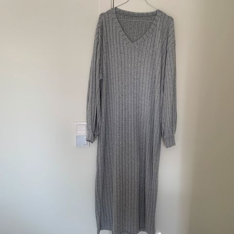 H&M Hverdagskjole i beige farge, størrelse M. Laget av ullmateriale. Designet for kvinner.Den består av 64 % polyester , 30% akryl og 6%ull og den er litt stor i str. Vil si det er en L