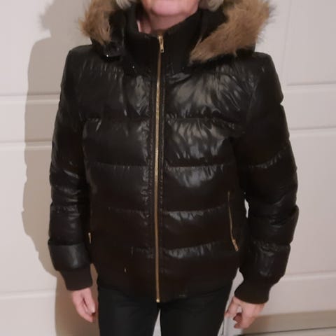 God og varm boblejakke med fuskepels på hetta fra Lindex. Brukt to sesonger som gravid, nå er den for stor for meg 😅 Avtakbart belte i livet, pelsen på hetta kan også kneppes av.