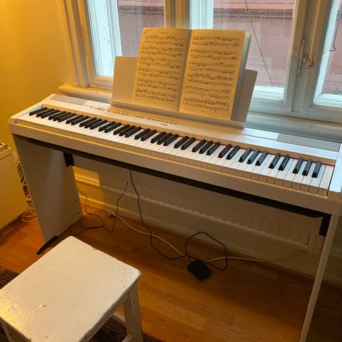 Dette pianoet har blitt brukt for nybegynner og mer avansert pianist. Fungerer som det skal, aldri vært noe problem med det. Noen bruksmerker er det jo men ingenting som påvirker funksjonaliteten.