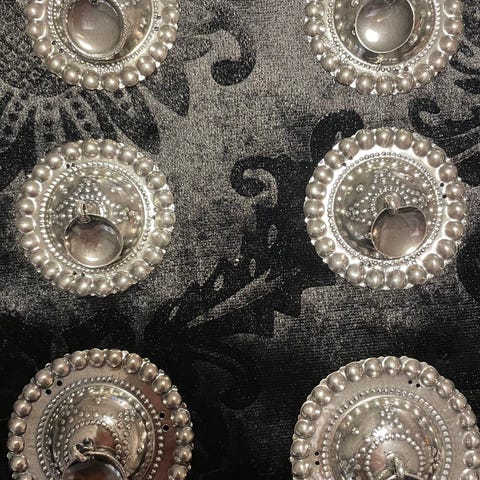 Borer med kruser og rød sten, 40 mm. Kr 1500