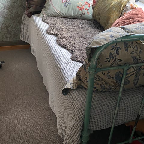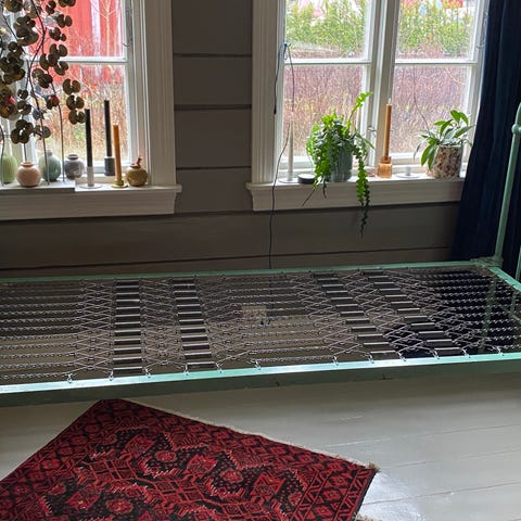 To enkle senger, to nattbord og en puff med oppbevaring. Selges grunnet oppussing.