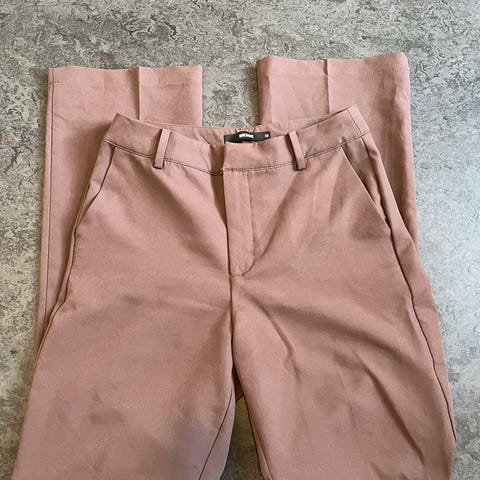 Dressbukser fra Nelly i størrelse 36. De er nesten ikke brukt da de egentlig var som små for meg. Jeg har sydd de opp i beina slik at de passer en som er ca 165cm høy, men disse kan jeg lett ta opp dersom du er høyere men ønsker å kjøpe.