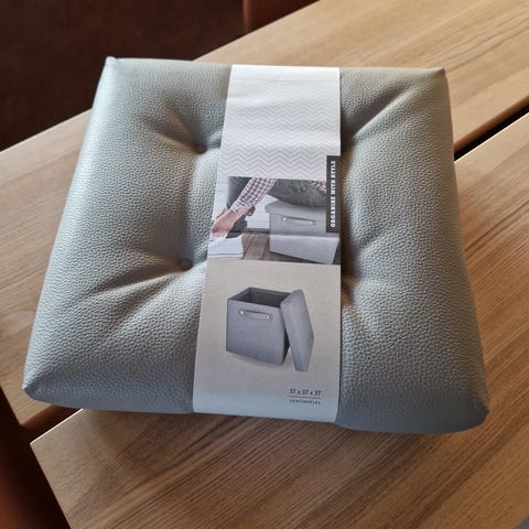 Pen heklet puff med Sacco på innsiden. Tåler mye og er god å sitte på og hvile ben på. Må hentes i Askim