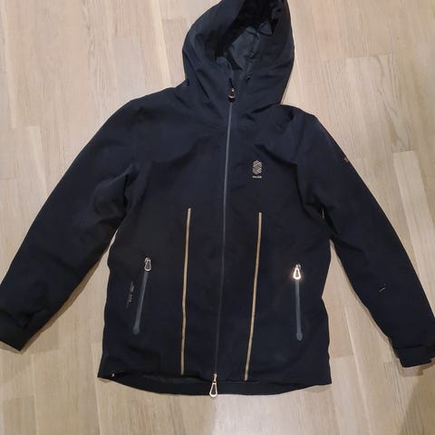 Jakken har hette og justerbare snorer både for hette og nederste delen på jakken, samt borrelås som stramming rundt ermene for tilpasning. Passer for barn i størrelse 152.