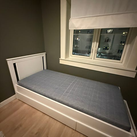 Pent brukt ikea seng med underseng. Har noen få bruksmerker. Madrasser følger med (hvis ønskelig)men har noen flekker. Trekket kan vaskes.