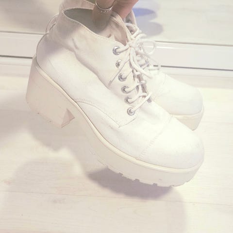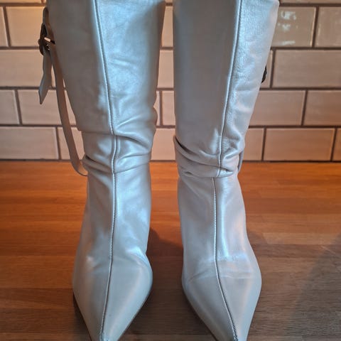 Nesten ubrukte Buffalo støvler i størrelse 39 med hvit farge. Støvlene har en robust såle og snøring foran. Noe veldig små merker foran på venstre sko.