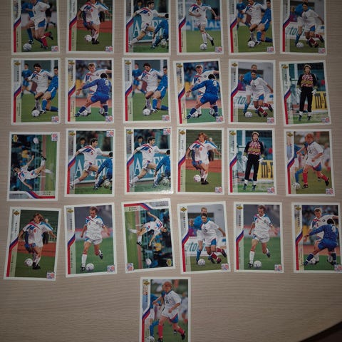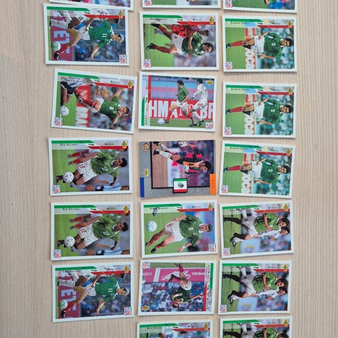 Samling av 30 fotballkort med spillere fra USA under VM i USA 1994.