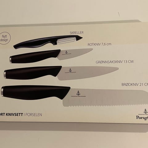 Knivsett fra Porsgrunds porselen, De Cuisson, med ergonomisk håndtak.