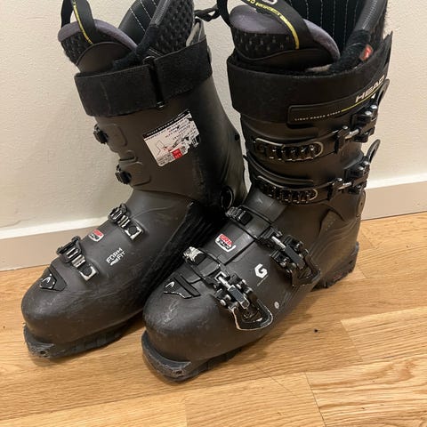 Salomon X Pro 100 alpinstøvler i størrelse mondo27 cm (316 mm). Jeg bruker størrelse 41 og bruker en ekstra såle i dem.