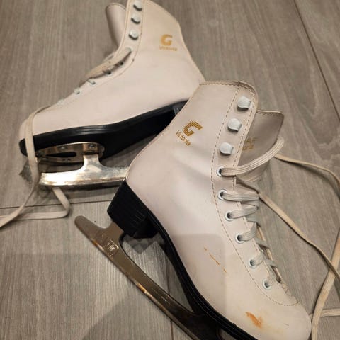 Pent brukte hvite danseskøyter til barn. Størrelse 34