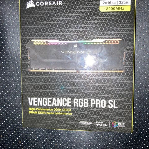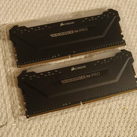 Corsair Vengeance RGB PRO DDR4 RAM med en total kapasitet på 32GB og en hastighet på 3600MHz. Minne modulene har RGB-belysning og er designet for høy ytelse i datamaskiner som krever raskt og pålitelig minne.