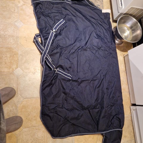Ett brunt trust equestrian dekken, ingen skader. Uvisst hvor mange g. Str 135. 500kr.