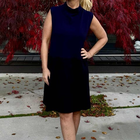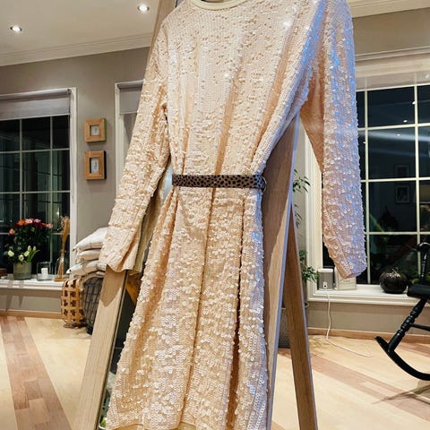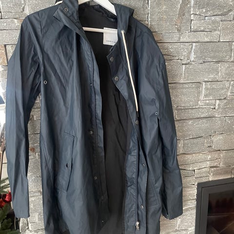 Mørkeblå kjole fra COS merket i str. M. Den er liten i størrelsen. Vil passe bedre en str. XS/S. Et lite falmet parti helt nederst, muligens fra stryking. Ikke sjenerende.