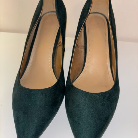 Sorte høyhælte skor med rød skinnkant samt rød effektsøm. Liten platåsåle gjør det slik at de høye hælene, 9 cm, ikke føles så høye. Størrelse: 41,5. Merke: Scholl. Brukt 2 ganger. Ikke noe slitage.