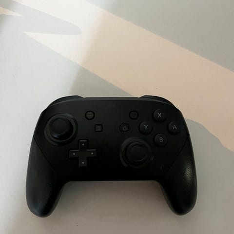 Nintendo Switch Split Pad Pro kontroller for Nintendo Switch-konsoll. Består av to deler med analoge pinner, knapper og D-pad. Designet for å forbedre spillopplevelsen ved håndholdt bruk. Svart farge med røde detaljer.