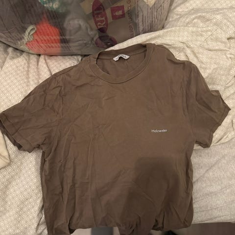 Fet design foran med noen hester samt Holzweiler logoen bak, pent brukt plagg.