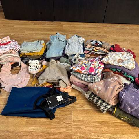 I pakken får du vindjakker sommer og høst, vannavstøtende vår/sommerjakke, turbukse Vikafjell, bukser, gensere, kjoler, pen buksedress, t-skjorter og singleter, shorts og skjørt, treningstøy, 3 morgenkåper(to rosa, en i 134 og en i 146), kosedress, sko og sandaler, lue, votter, caps, tights, strømpebukser, ulltrøye langermet, to pysjamaser str 146-152. Her finner du klær fra HM, guess, ellos, kappahl, Reima, Vikafjell, pierre robert, wow osv
