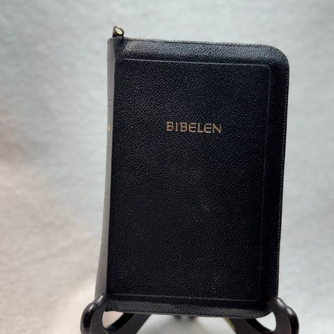Bibel med Det gamle og Det nye testamente. Utgave fra 1978, innbundet med svart omslag og gullfargede kanter.