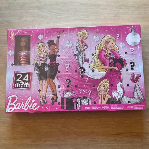 Barbie Fashion City Brettspill med spillbrett og tilbehør. Spillet inkluderer flere kort og figurer for å simulere en mote- og byopplevelse.