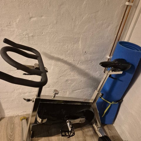 Abilica xs 2.0 spinningsykkel med justerbart sete og styre, solid ramme i hvit farge selges rimelig.