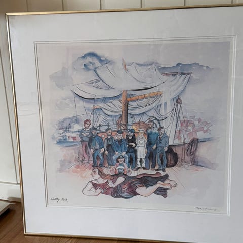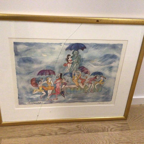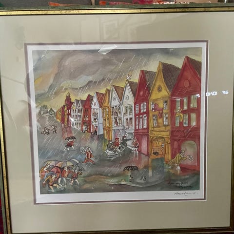 "VÆRMELDING", signert Hetland. Kjent kunstner fra Bergen. (1920 - 1998)