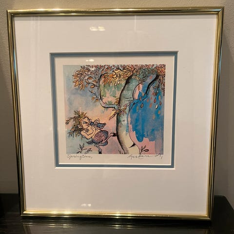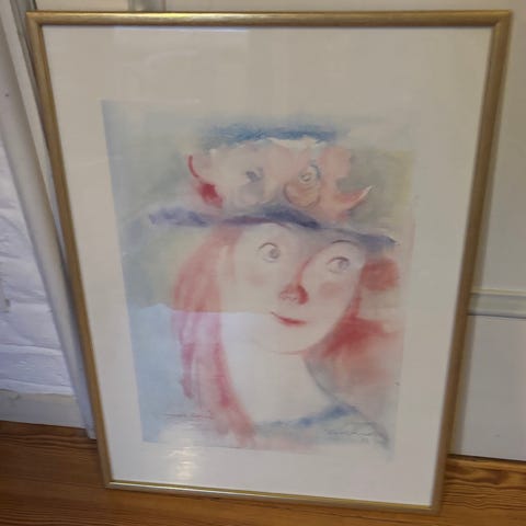 Ramme mål B 69 x H 62 cm. Motivet: 50 x 43,5 cm. Profesjonelt innrammet.