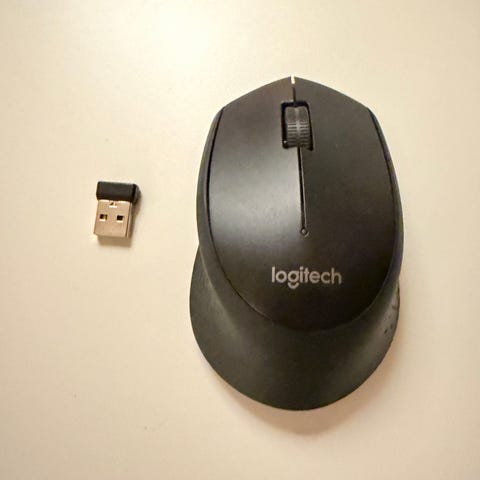 Logitech trådløs mus i svart farge. Musen har stille klikkfunksjon og trådløs tilkobling, egnet for bruk med PC og bærbare datamaskiner.