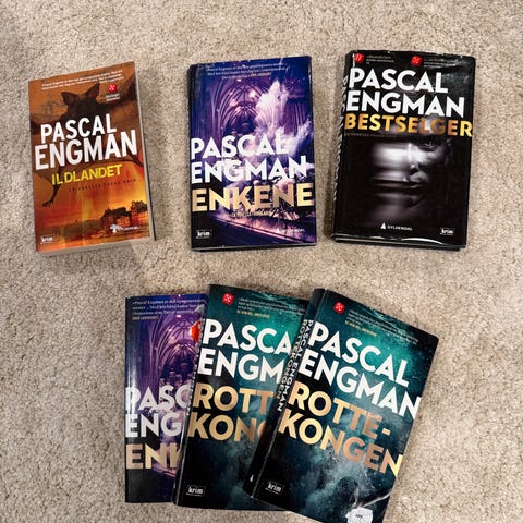 Bøker med ulike titler innen krim og skjønnlitteratur