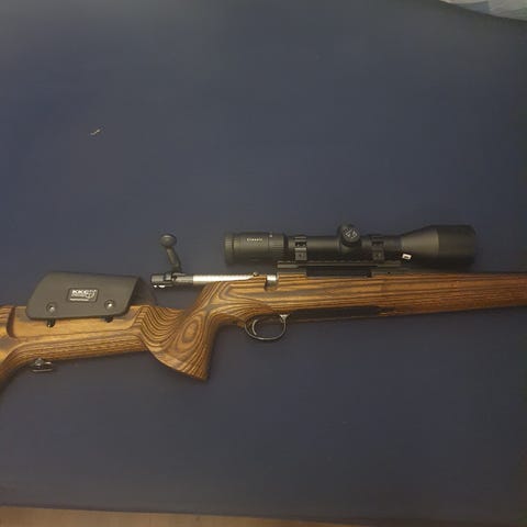 Jeg kjøpte våpenet for 4-5 år siden av et dødsbo, så alder er ukjent, men våpenet ble etter det jeg fikk opplyst ikke mye brukt. Det er bruksmerket på våpenet, så det har vært med på banen noen ganger. Selger kjente heller ikke til hvilken twist det er på løpet. Jeg har skutt 3-400 skudd (altfor lite) før jeg landet på et annet kaliber til PRS. Det følger med dier og et lass med hylser.