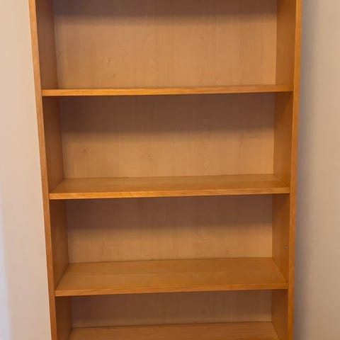 Denne hyllen har stått i ro på samme sted, er super til oppbevaring av bøker, glass, leker, baderomsting osv. Ny pris 1545