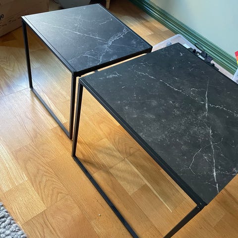 Selger et bord fra jysk, har noen bruksmerker og noen merker på siden fra å ha stått på høykant i boden
