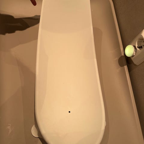 Festeklipsen er ødelagt, men ellers er badekaret og støtten helt fint.