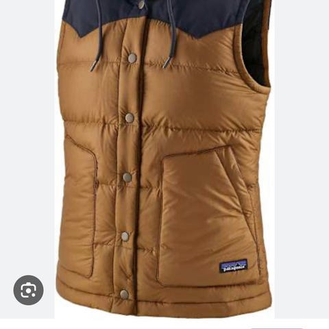 Varm vest fra Patagonia. Beigefarget med brun hette. Kun prøvd på. Fjernet tag litt for tidlig :-).