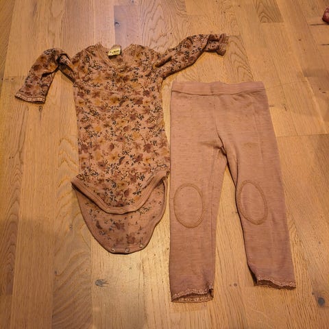 Ullsett: genser, bukse og lue i str. 86. Pent brukt av ett barn.