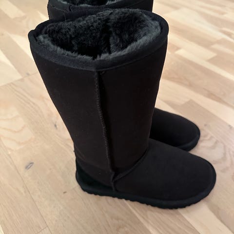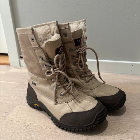 UGG vinterstøvler i størrelse 38 med brun farge. Støvlene har en myk og varm innside, samt dekorative sløyfer bak. Laget i materialer som egner seg for kalde værforhold.