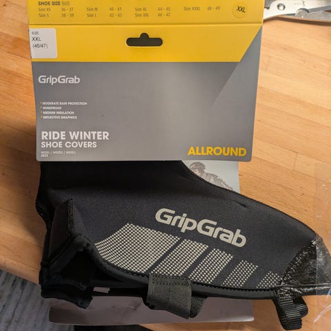 GripGrab sykkel skoovertrekk i størrelse XL (44-45), svart farge. Laget av materiale som beskytter mot vind og vær. Designet for å dekke og beskytte sykkelsko under sykling.