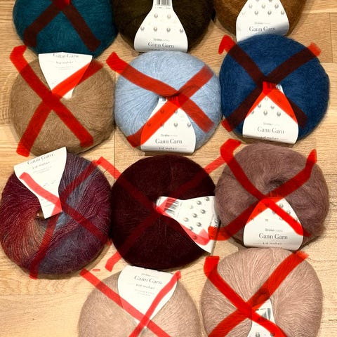 8 stk farge 816 mørk gammelrosa selges for 240,- (koster 99,- pr. stk. hos Strikkemekka)