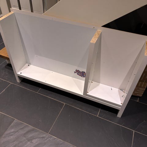 Hele bordet 120 cm lengde (med de åpne hyllene, 2 foran, 2 bak)