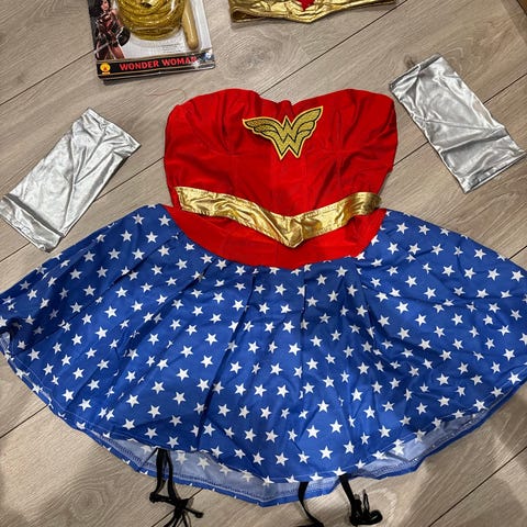 Dame politi kostyme i blått med svarte detaljer. Inkluderer dress med glidelås, belte, hansker, hatt og tilbehør som pistol.