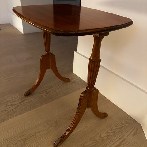 Dekorativt vintage bord kjøpt fra Kremmerhuset. Skal være et indisk vintage bord brukt til å kverne krydder og korn. 76 cm i diameter.