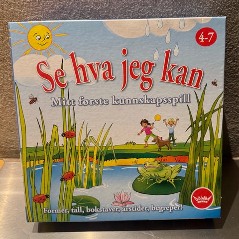 Se hva jeg kan Mitt første kunnskapsspill er et brettspill designet for barn i alderen 4-7 år. Spillet inneholder oppgaver som hjelper barn med å lære og sette sammen ulike ferdigheter. Spillet inkluderer kort og spillebrett med illustrasjoner, og fokuserer på å utvikle tidlig kunnskap og forståelse gjennom lek.