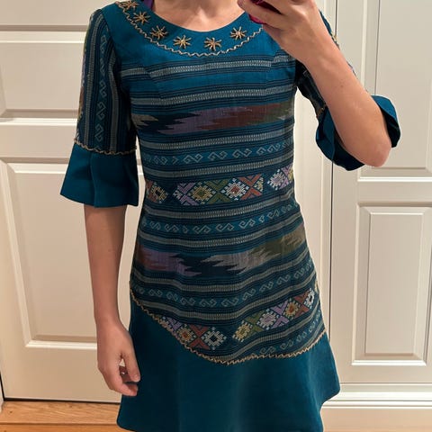 Vintage 60s rå silke paisley-trykket skjortekjole. Bryst 30 tommer eller størrelse XXS.