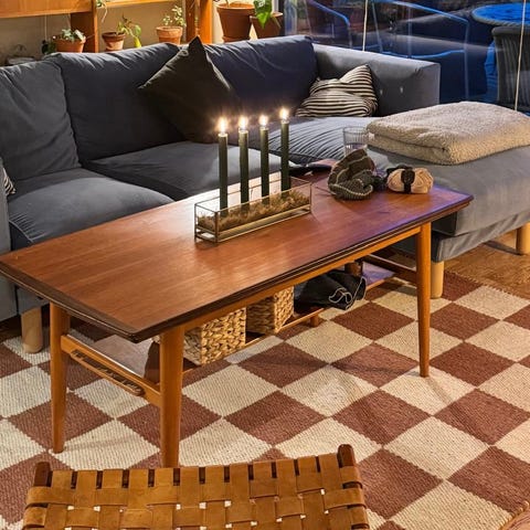 Mahognibeiset teak salongbord, multifunksjonelt!
