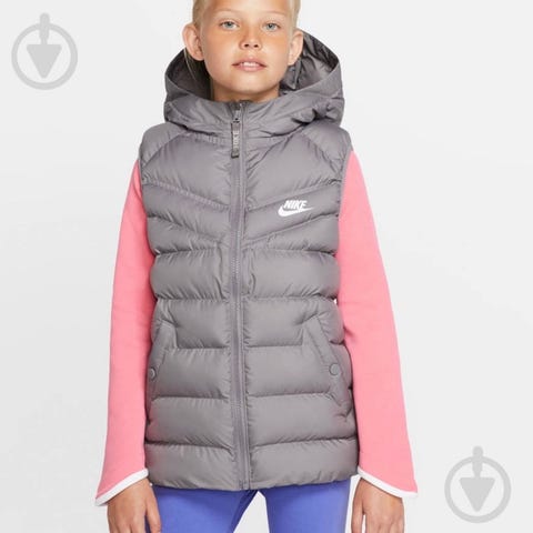 Nike dunvest i svart farge for barn i størrelse 146, beregnet for gutter. Vesten er laget med dunfyll som gir isolasjon og varme.