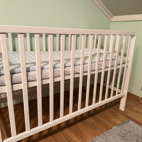 Sprinkelseng i hvit farge fra barnas hus.