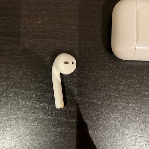 Apple AirPods trådløse øretelefoner i hvit farge. Inkluderer ladeetui for oppbevaring og lading. Fortsatt god lyd, og batterikapasitet. De byttes ut grunnet nye i julegave.