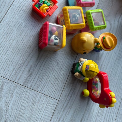 Fisher-Price Little People lekesett med bondegård, inkludert en figur av en bonde, en sau og en katt.