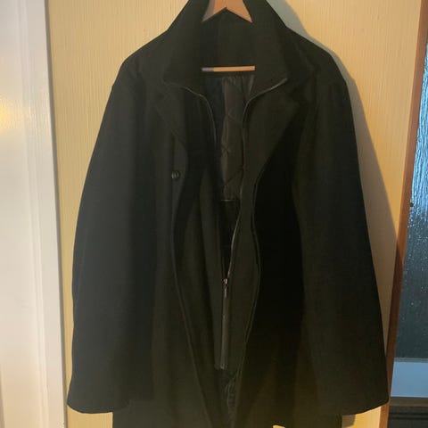 Kappe i bomull og polyester. Den har klassisk snitt. Er størrelse 2xl++. Han på bildet er 187cm. Kappen selges fra et dødsbo. Den er renvasket og ikke slitt